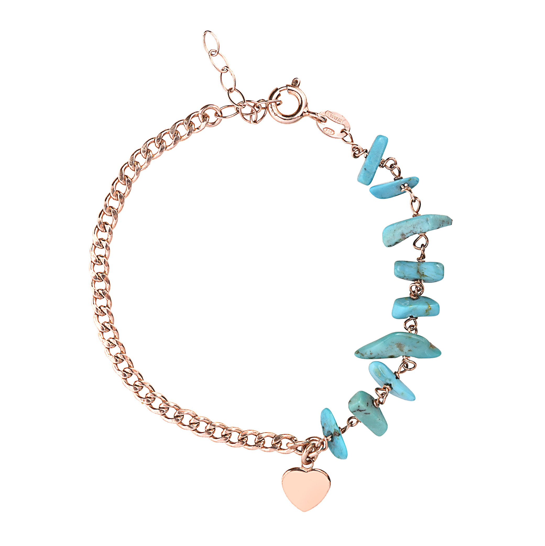 Rose gold plated silver bracelet with turquoise paste. Handmade, made in Italy.