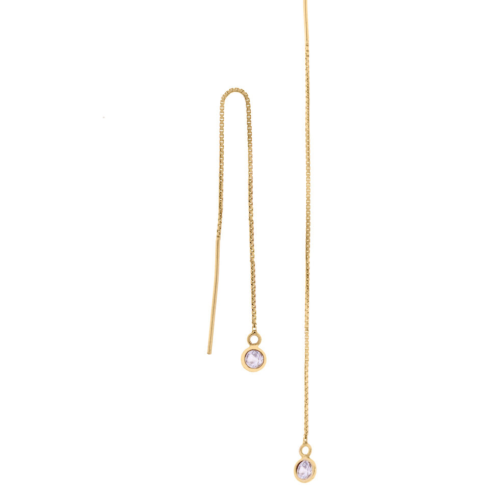 Orecchini in oro giallo con charms di zirconia tonda bianca pendente.